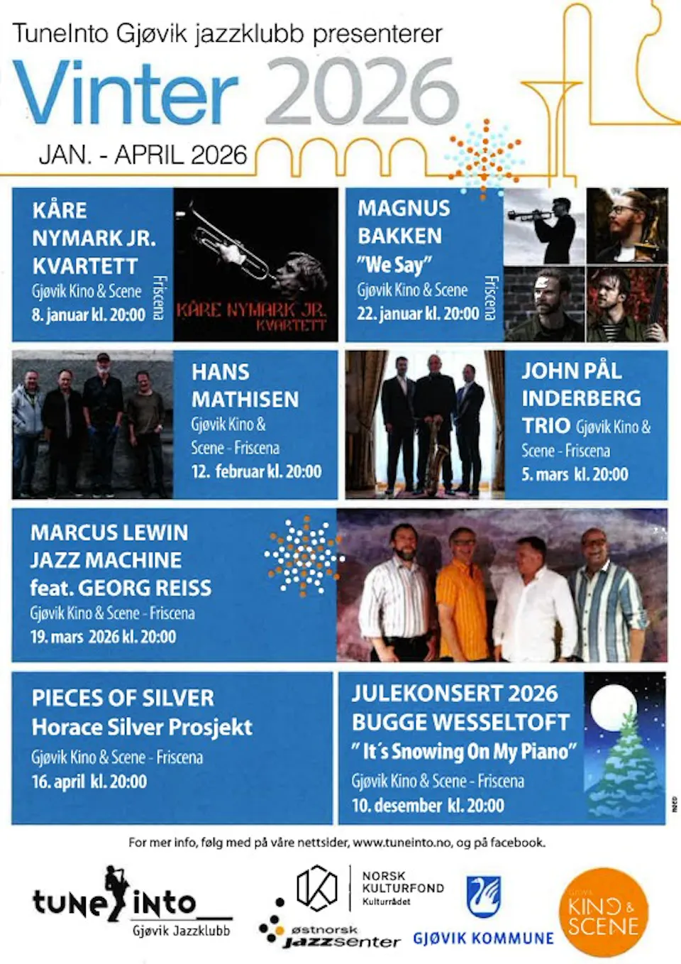 TuneInto Gjøvik Jazzklubb har siden oppstarten i 1997 arrangert jazzkonserter på høyt nivå; med både norske og internasjonale stjerner. For å utvikle og forbedre klubbens synlighet og digitale tilgjengelighet er vi veldig interessert i å knytte til oss en person med interesse og kunnskap om markedsføring på Facebook, X og lignende. Ta gjerne kontakt dersom du føler du har noe å bidra med. Vi kan ikke tilby honorarer, men du får iallfall ta del i et lite, men aktivt og tildels kreavtivt jazzmiljø - samt en masse flotte konserter.